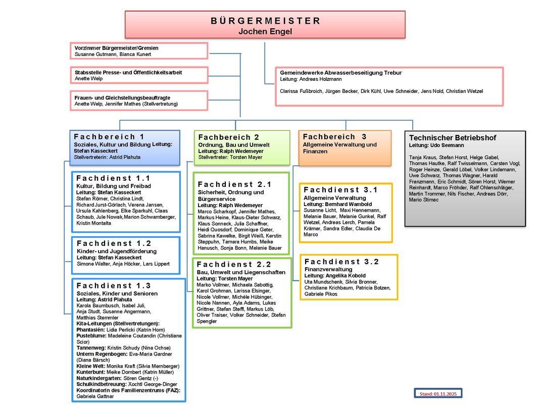 Organigramm der Gemeindeverwaltung Trebur - Stand: 01.11.2025