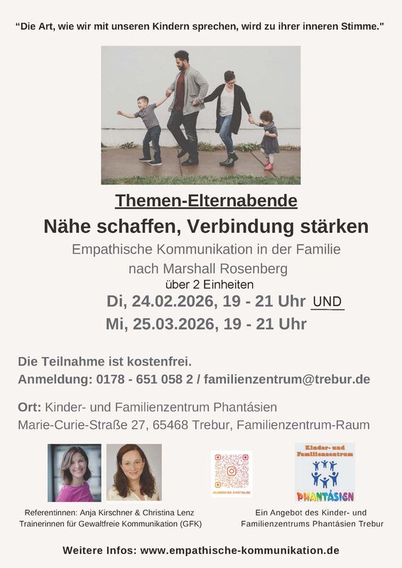 Ort: Kinder- und Familienzentrum Phantásien, Marie-Curie-Straße 27, 65468 Trebur, Familienzentrum-Raum