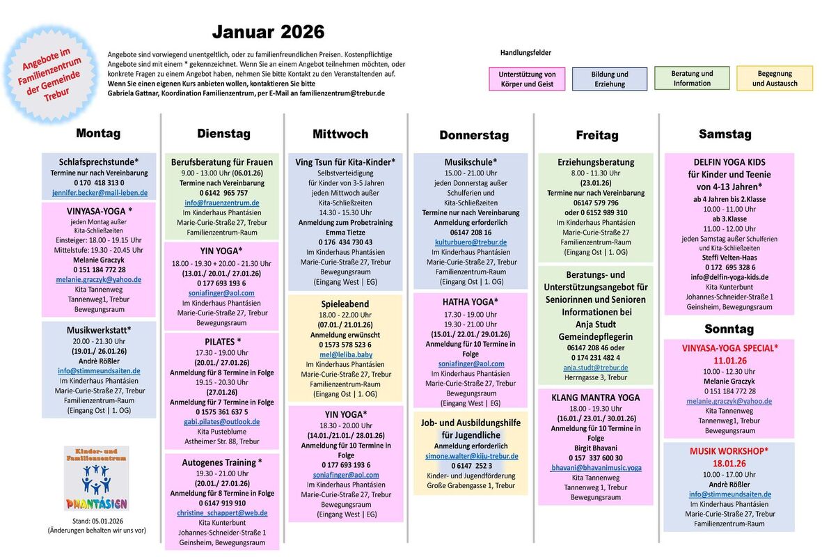Angebote im Familienzentrum Trebur für Januar 2026