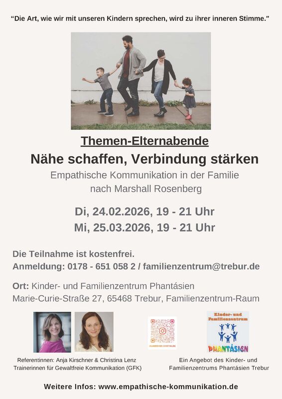 Ort: Kinder- und Familienzentrum Phantásien, Marie-Curie-Straße 27, 65468 Trebur, Familienzentrum-Raum