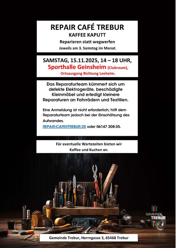 REPAIR-CAFE(at)TREBUR.DE oder 06147 208-16/35.